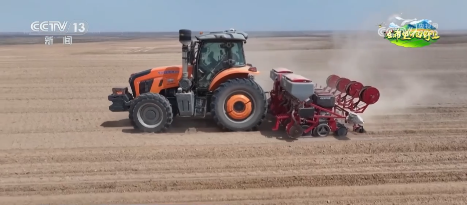 正在吴忠市盐池县一处万亩种养一体化示范内,搭载斗极系统的拖沓机正正在功课,工做人员只需要正在拖沓机掉头、弥补物料等需要环节稍做辅帮,就能一次完成播种和铺设滴灌带两项使命。