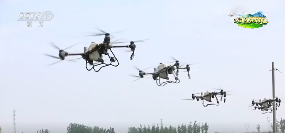 正在济宁市鱼台县唐马镇杨宅子村的小麦种植地,6架植保无人机正在飞手的熟练操做下,升空进行“一喷三防”功课。“一喷三防”,是指通过植保无人机喷施叶面肥等夹杂剂,防治病虫害、防止干热风、防早衰,确保小麦减产丰收。