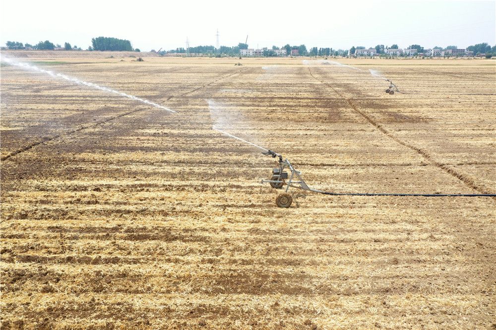 卷盘式喷灌机不只让地盘“喝饱水”,夏管是环节。发 (涛 摄)
