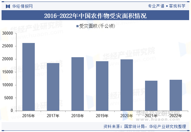中国是一个天然灾祸多发的国度,各类灾祸(干旱,洪涝,风雹及冷冻等)每年都给国度形成数千亿元的经济丧失,2022年夏日长江流域高温干旱,对农产物出产形成必然影响,农做物受灾面积12071。6千公顷。