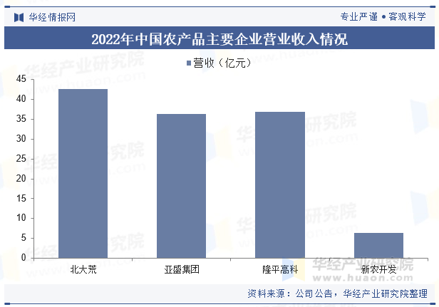 本文节选自华经财产研究院发布的《2023年中国农产操行业相关政策、财产链、分产物出口及将来成长趋向「图」》,如需获取全文内容,可进入华经谍报网搜刮查看。2022年,北大荒实现停业收入42。62亿元,同比增加17。42%;亚盛集团实现营收36。39亿元,同比增加9。19%;隆平高科实现停业收入36。89亿元,同比增加5。29%;新农开辟实现停业收入6。47亿元,同比削减5。53%。
