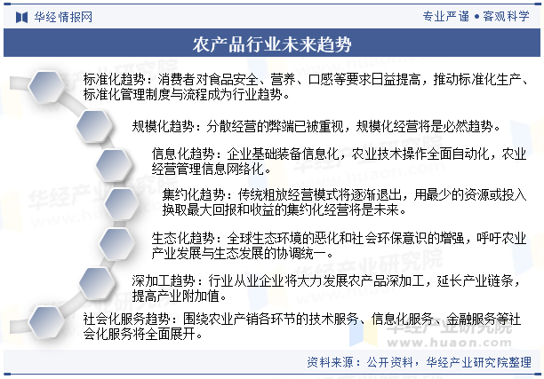 农产物市排场对着市场需求不变增加、价钱波动大以及质量和平安问题的挑和。然而,将来农产物市场潜力庞大。优良农产物的需求添加、农业科技立异的鞭策、农村电商的成长、农村旅逛取农产物的连系以及农业财产链的延长都将为农产物市场带来新的成长机缘。为了抓住这些机缘,应加大对农业科技的支撑力度,加强农产质量量监管,激励农人参取农村电商和农村旅逛等新业态的成长,同时加强农业财产链的扶植和完美。只要通过多方合做和配合勤奋,才能实现农产物市场的可持续成长和农人收入的持续增加。农产物的将来将逐步现代化,拉近取发财国度农产操行业的差距。
